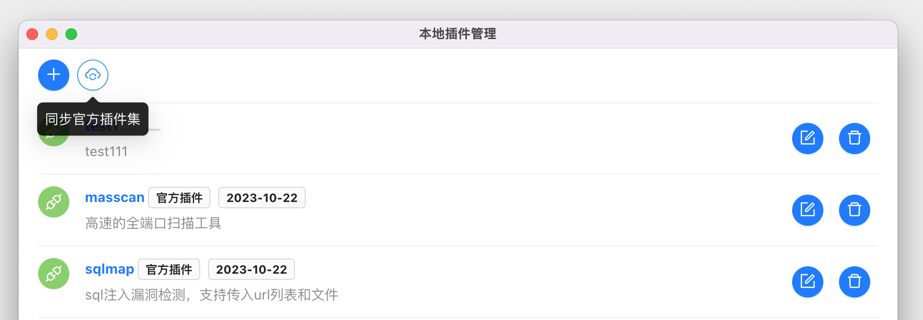If you want to use local plug-in capabilities, you can go to the Local plug-in interface, click the Synchronize plug-in set button to pull the plug-in from the cloud to the local.